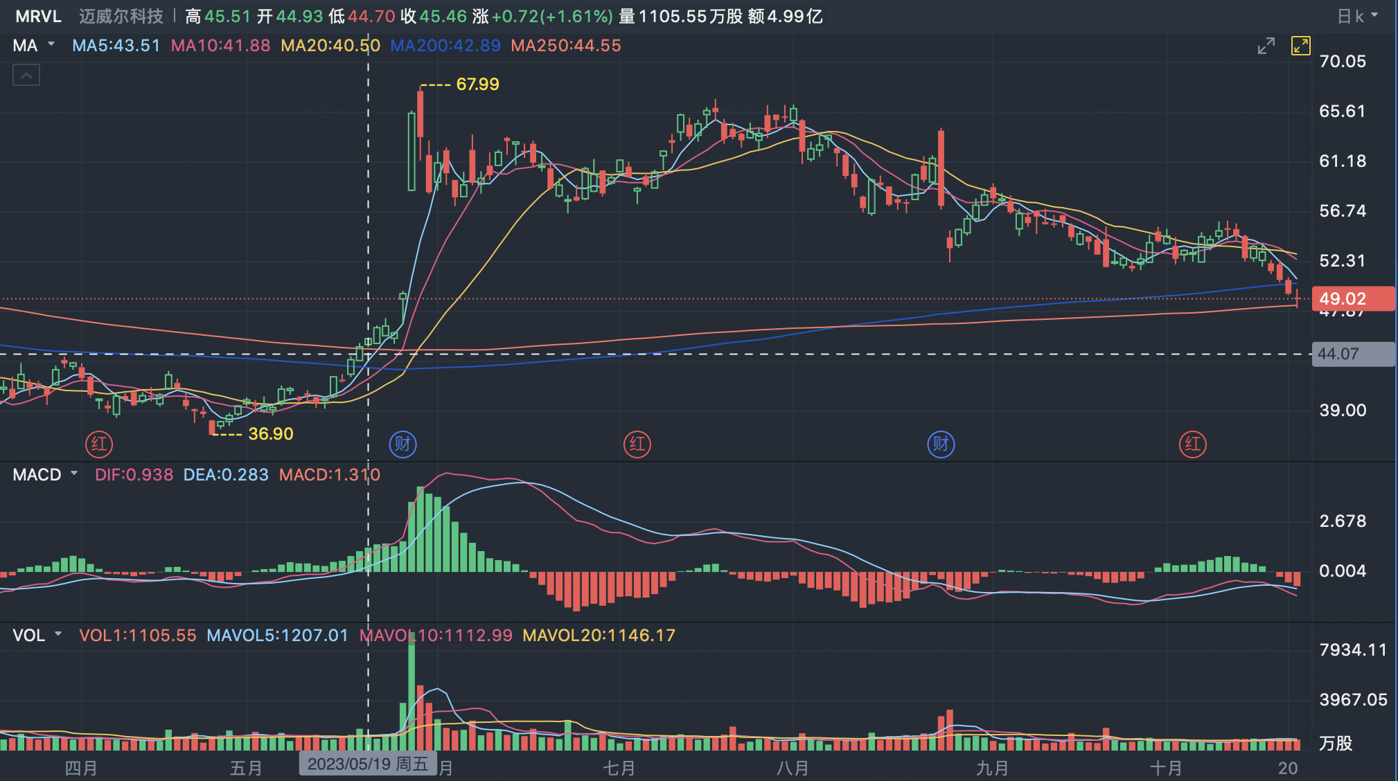 NVDA shares have rebounded sharply, nearly tripling year-to-date. While data center and artificial intelligence chips will further drive chip demand, macroeconomic uncertainty and the risk of a global recession remain. In the wake of the Hamas attack on Israel, Nvidia canceled its AI summit scheduled for October 15-16 in Israel. On October 17, the United States tightened export restrictions to China, a move that will target Nvidia's A800 and H800 artificial intelligence chips. Affected by AI chip restrictions, the stock fell more than 5% on October 17.