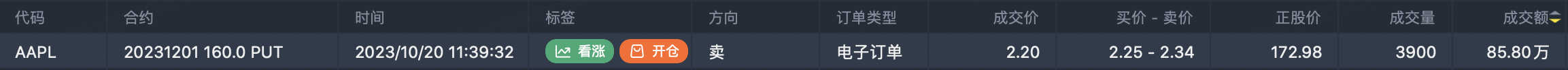 Exercise price: 160; Expiration date: Dec 1st; Volume: 3900; Total turnover: 858,000; Stock price at transaction: 172.98;