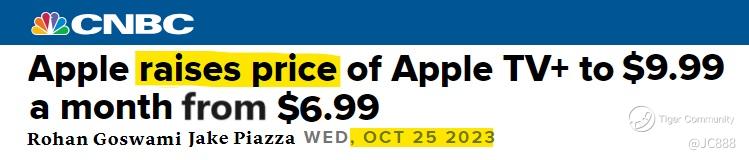 On 25 Oct 2023, Apple made the announcement for multiple of Apple subscription services to be revised upwards by a massive +42.92% approximately.