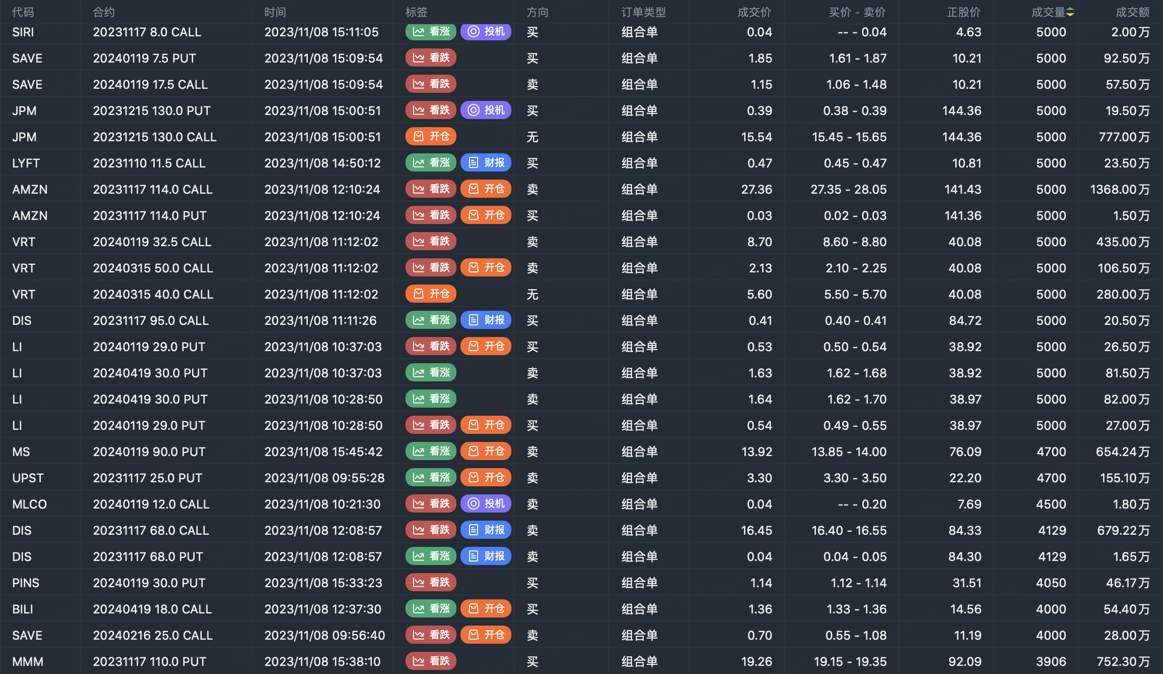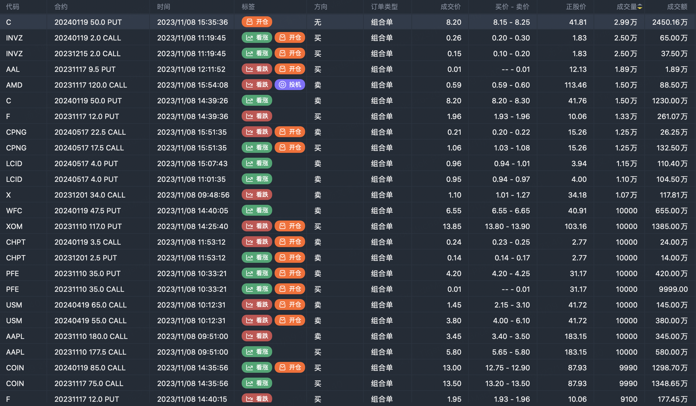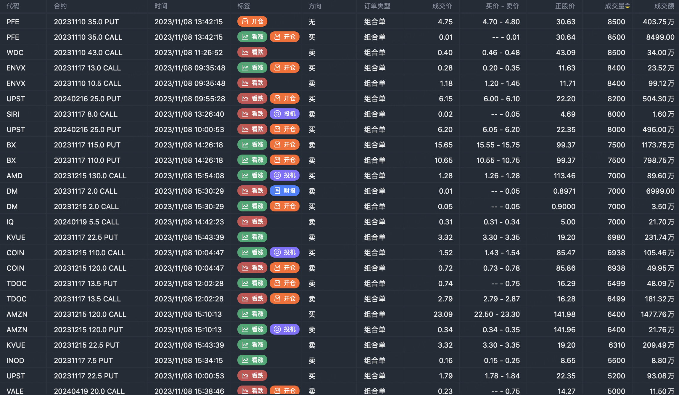 Note: This image data is from Tiger PC. This screening is a significant portfolio of options contracts in the market. Portfolio opening includes a variety of underlying trends, requiring traders to further master the basic knowledge of options for analysis and judgment.
