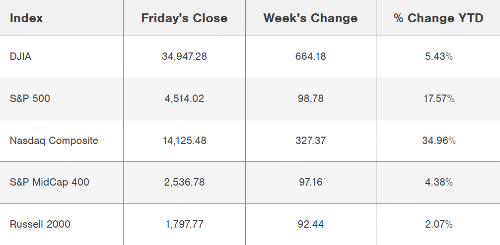 The S&P 500 Index built on its strong gains over the previous two weeks and moved above the 4,500 barrier for the first time since September. The weekโs advance was also notably broad, with an equally weighted version of the S&P 500 Index outperforming its market-weighted counterpart by a full percentage point. The Russell 1000 Value Index also outperformed its growth counterpart and moved back into positive territory for the year to date. The small-cap indexes also outperformed.