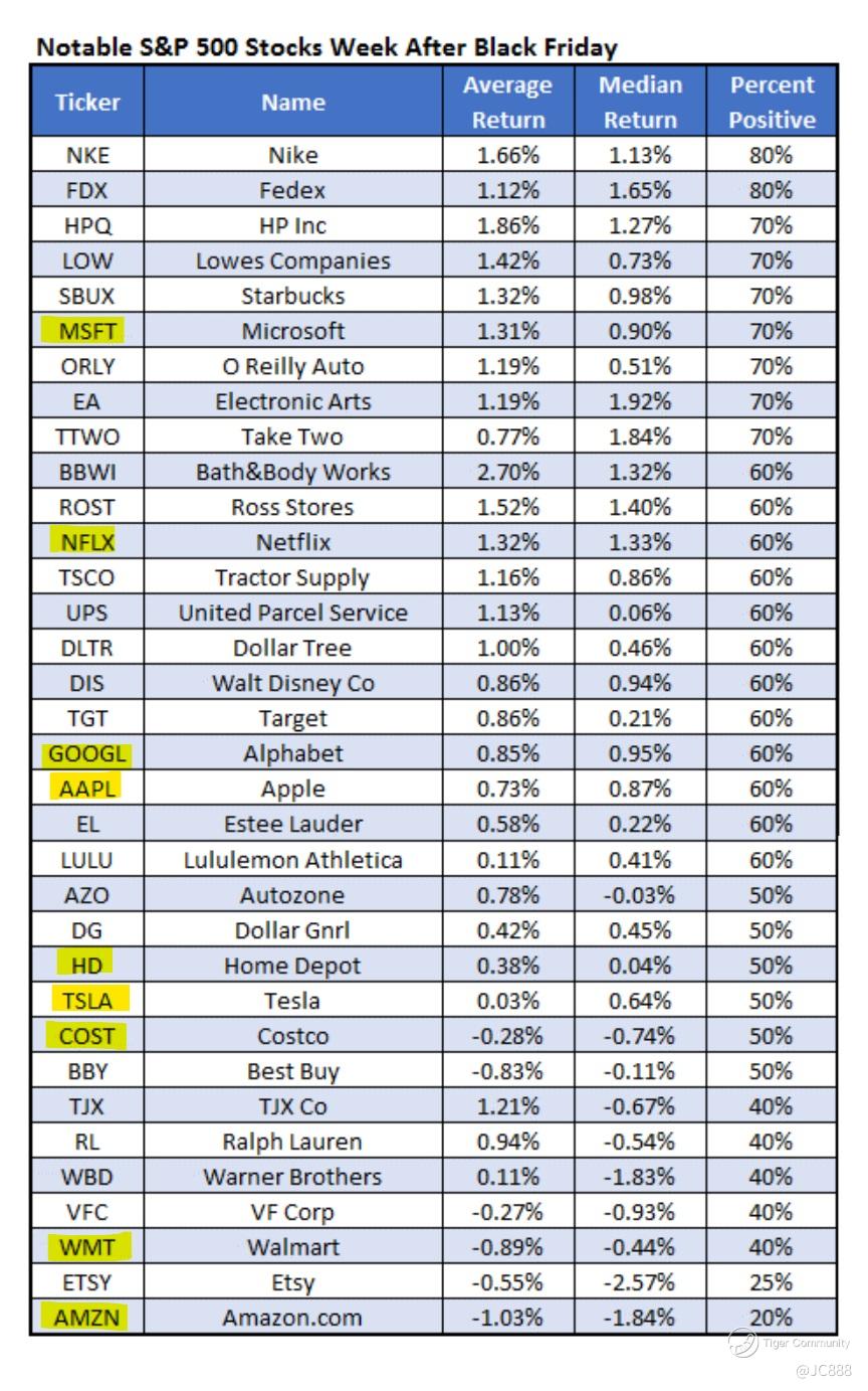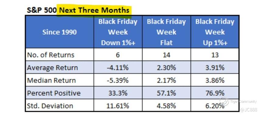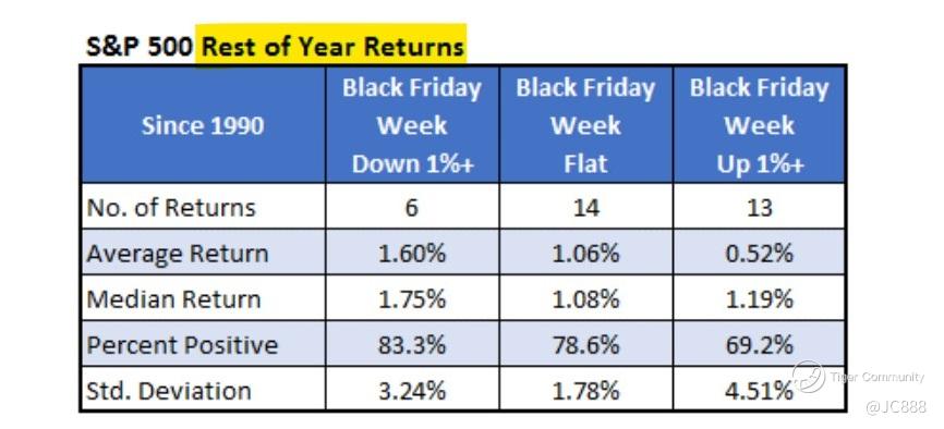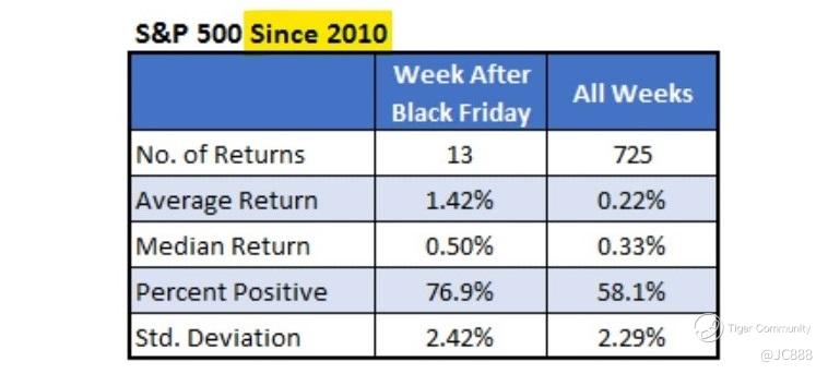 Above table summarizes the $S&P 500(.SPX)$ performance in the week after Black Friday.