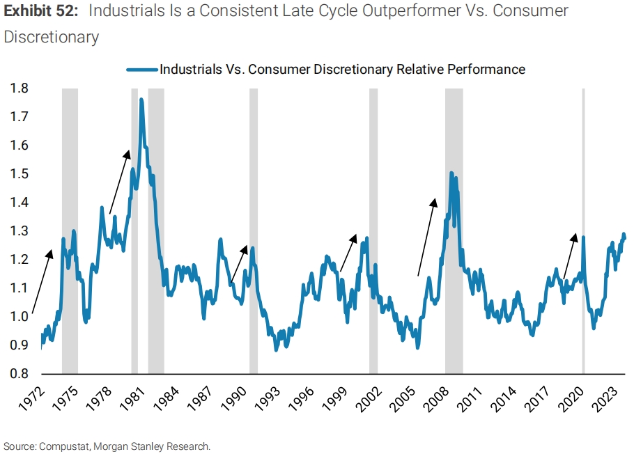 Morgan Stanley: Industrial and energy stocks have better relative performance in the late cycle