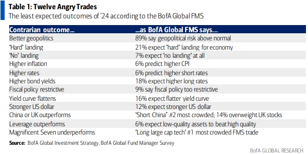 Interestingly, Bank of America recently introduced 12 trades that go against consensus expectations for next year. For your reference, let’s see how many point would happen next year.