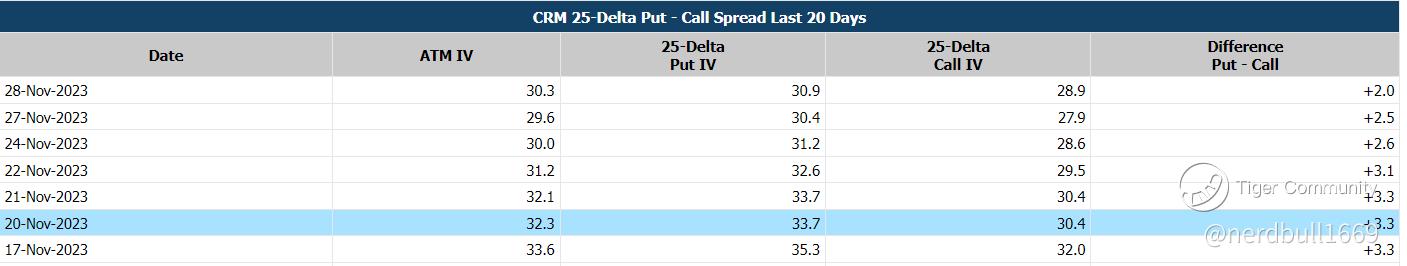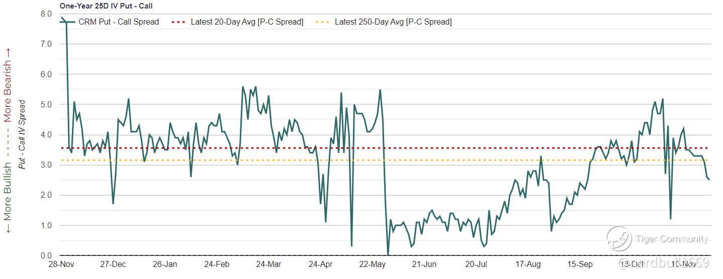 Salesforce (CRM) Volatility Spread of 25-Delta Suggest Slightly Bullish Upside Post Earnings