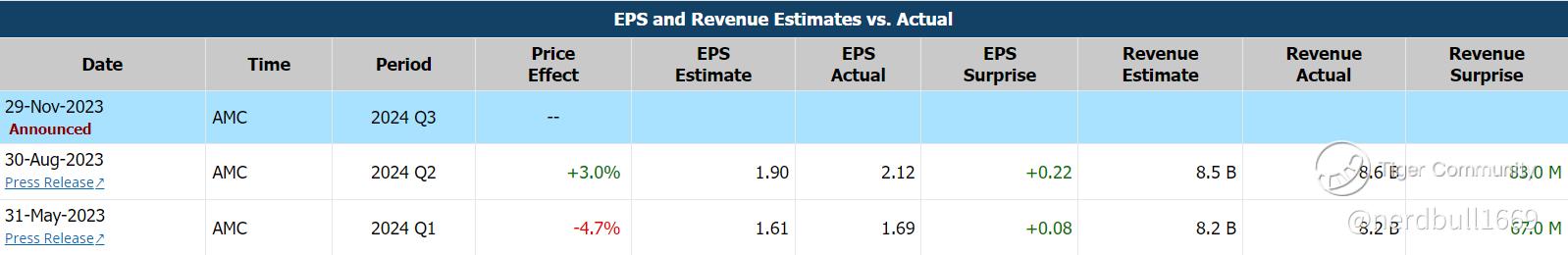 $Salesforce.com(CRM)$ is scheduled to report its earnings on 29 Nov 2023 after market close. Market expect the company to top earnings expectations as it has done so for the last 4 quarters.