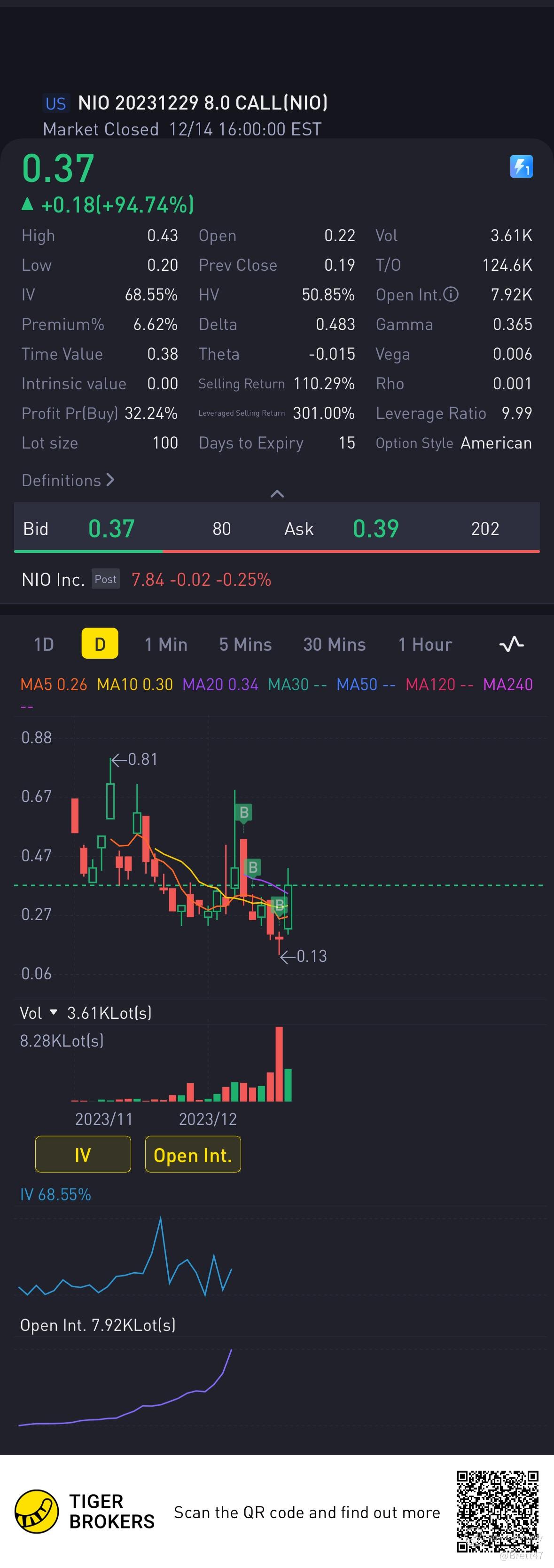 $NIO 20231229 8.0 CALL$ Check out this multi day runner today, if it hits $8.20 within 30mins of opening, sell it and re-enter again for a quick flip