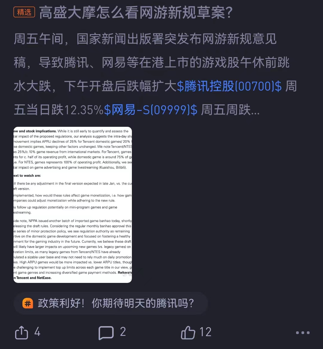 有價值的原創信息/精編信息: 提供有關投資的原創信息,包括投資思考、交易覆盤、大額曬單分享等。我們也鼓勵提供經過精編後的信息,並附上相應的分析。