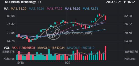 $Micron Technology(MU)$ stock soared nearly 5% in after-hours trading on Wednesday as the memory chip manufacturer released its Q1 fiscal year 24 results and full-year guidance, both of which exceeded market expectations.