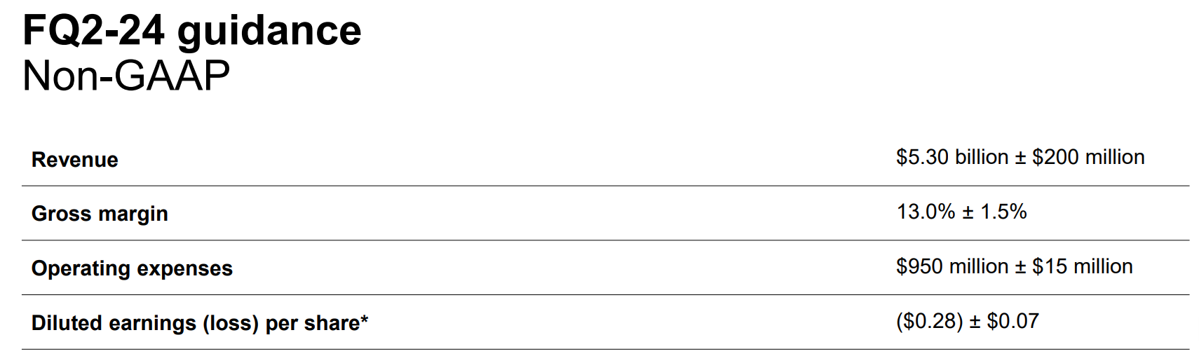 Looking ahead, the company expects Q2 revenue to be between $5.1 billion and $5.5 billion, higher than the market expectation of $4.99 billion. The adjusted gross margin is projected to be between 11.5% and 14.5%. Adjusted loss per share is expected to be between $0.21 and $0.35, significantly better than the expected loss of $0.62.