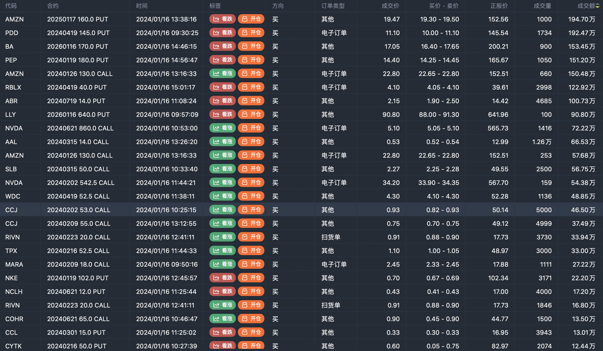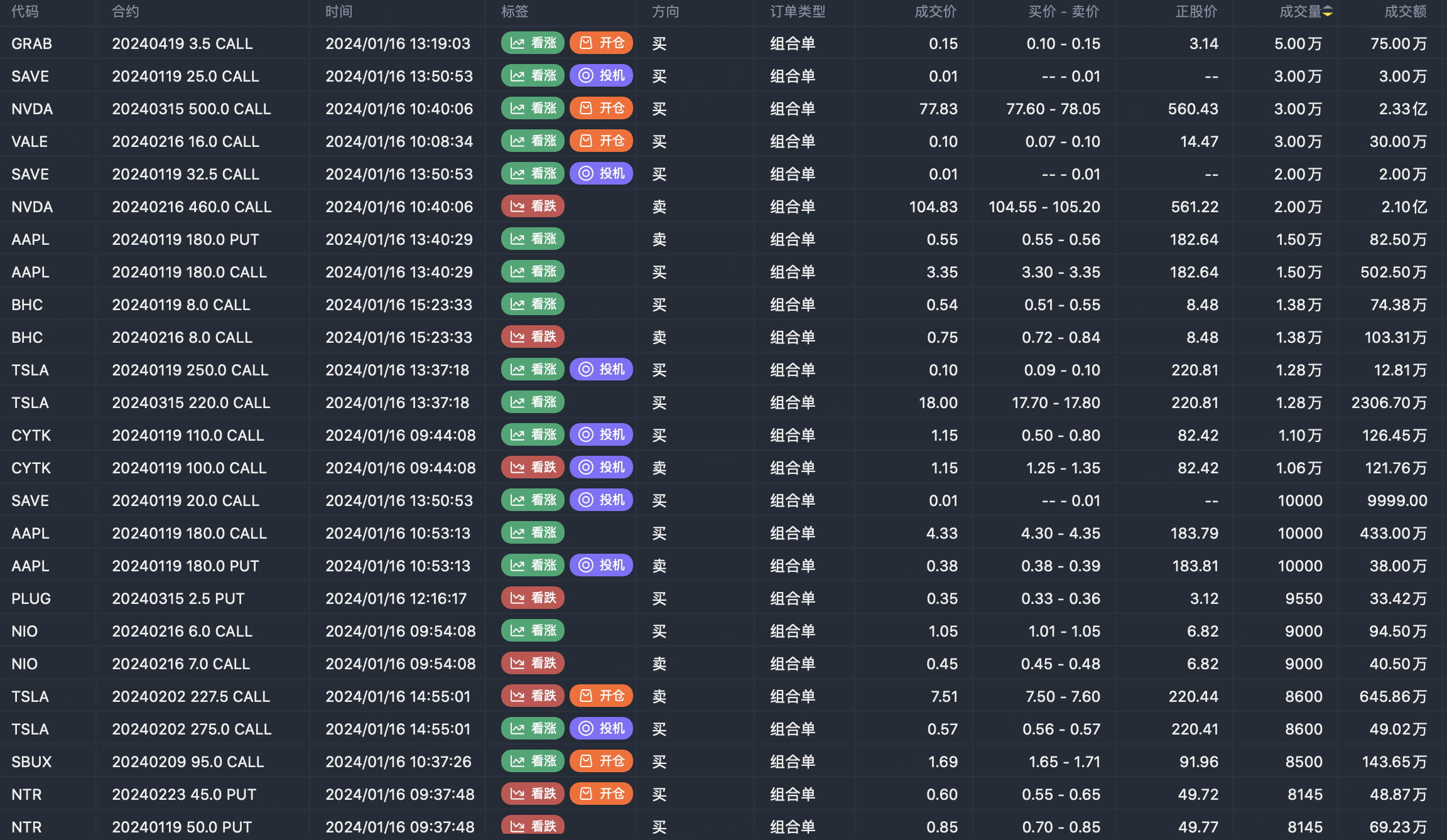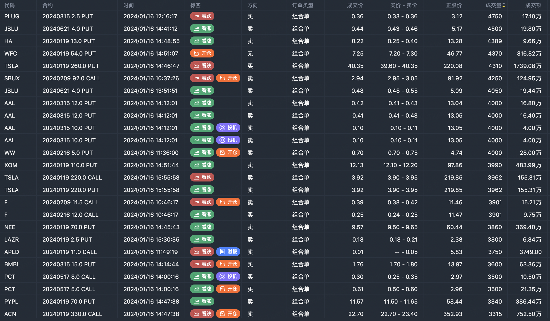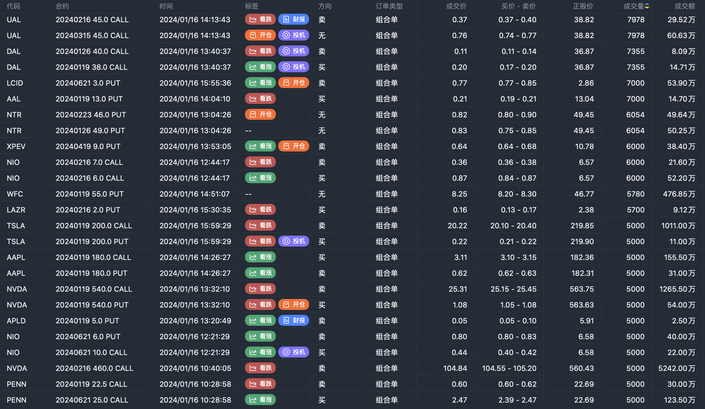 Note: This image data is from Tiger PC. This screening is a significant portfolio of options contracts in the market. Portfolio opening includes a variety of underlying trends, requiring traders to further master the basic knowledge of options for analysis and judgment.