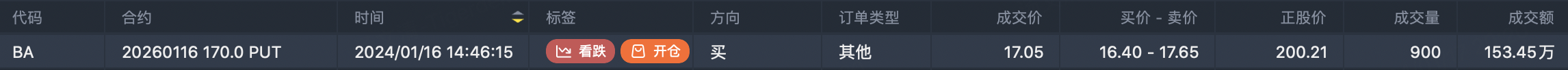 Wells Fargo noted that given Boeing's recent results, as well as the FAA investigation, it would be difficult for Boeing not to be affected. A further risk is that the FAA's investigation could extend beyond the 737 Max to other aircraft that share common parts, which would significantly hurt Boeing's ability to produce and deliver. Large put buy orders in option transactions: $BA 20260116 170.0 PUT$