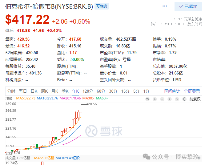 作爲伯克希爾股東的話,近幾年,或者說拉長看的收益率也基本上能維持在15%-20%。總體上伯克希爾的股價和市值也是穩步上漲的。想像英偉達那樣暴漲也很難,但是想虧損也很難。2023年、2024年的漲幅都在15%左右。巴菲特也在股東信中誠懇的說到,想讓伯克希爾這種體量獲得巨大的收益增長,也非常難了。還好,目前伯克希爾的資產質量不錯,所以想要虧損也比較難。