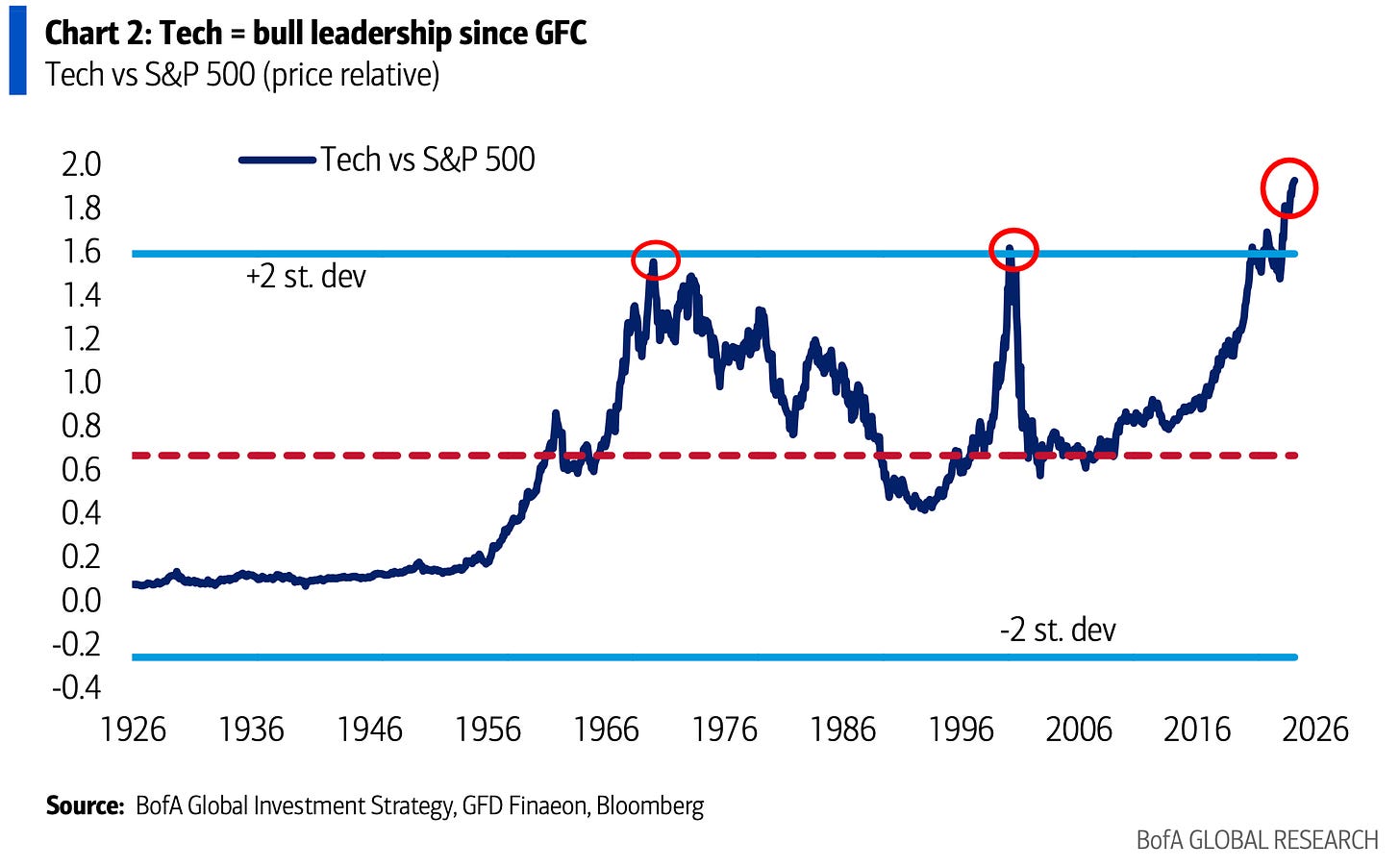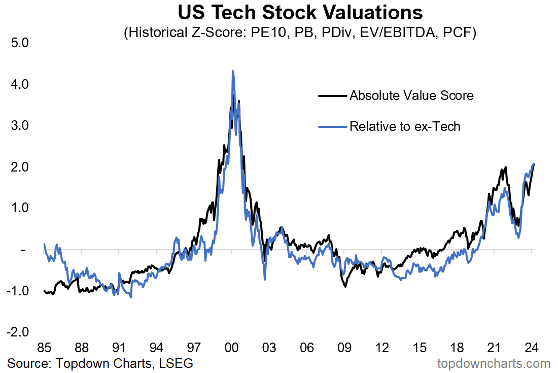 US tech stock valuations have now surpassed the 2021 highs in both absolute terms (vs their own history) and relative terms (vs the rest of the market).