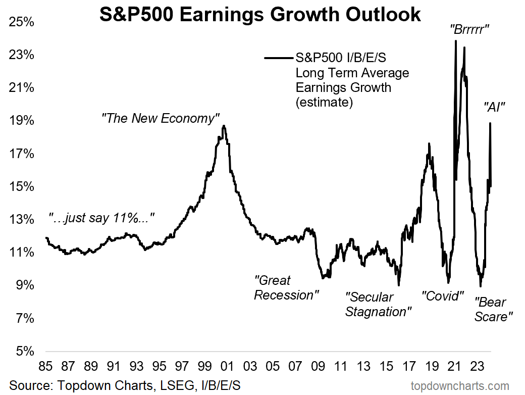 Another angle on that — long-term earnings growth forecasts are surging once again as the AI era emerges.