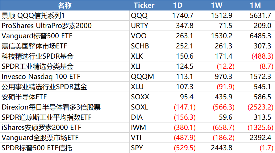 The Dow ETF $SPDR Dow Jones Industrial Average ETF Trust(DIA)$ , on the other hand, saw significant outflows.