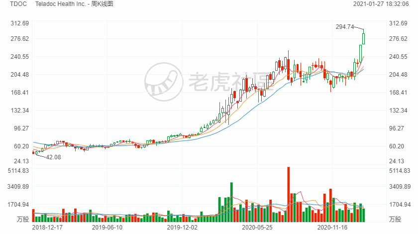 此外,從歷史上看,Teladoc的收入來源主要是與大型企業或者保險公司簽約,然後允許企業的僱員或者保險受益人使用,但是從公司的數據來看,不經過企業訂購,直接面向消費者的需求激增,在2020財年的第三季度同比增長了500%。