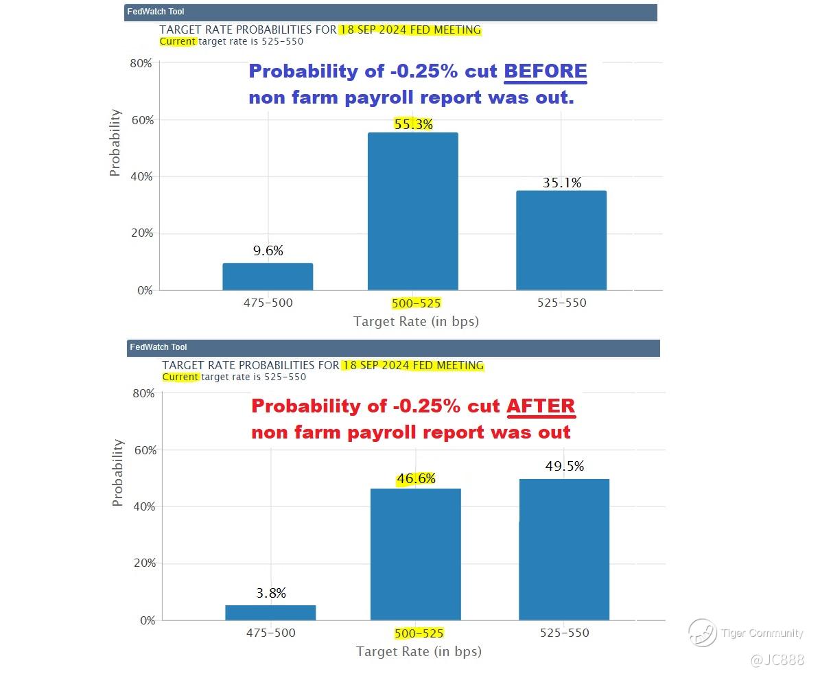Above is CME FedWatch tool reaction - before and after NFP report was released.