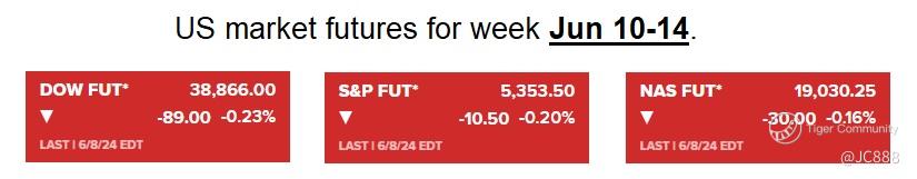 US market indexes futures for week of Jun 10-14 is not looking up.
