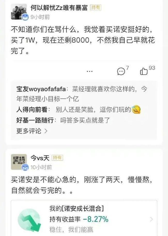 真的太好笑了,諾安支付寶評論區,新晉段子基地,靠一己之力,完成了基金風險教育,諾安人民太慘了。