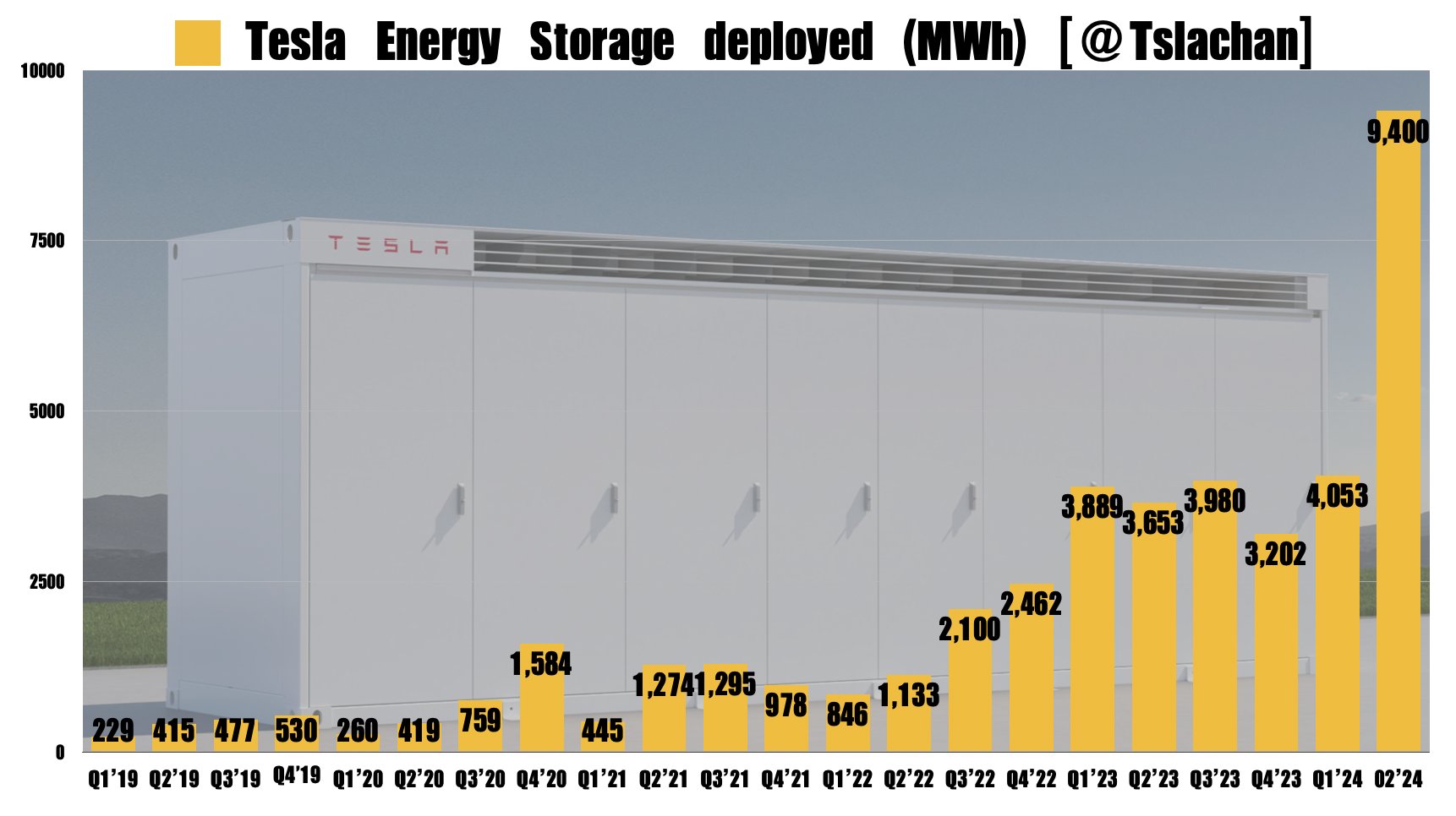 $Tesla Motors(TSLA)$ distributed 9.4 GWh of energy storage in the second quarter of 2024. This is the highest ever. It's an incredibly high record. Declare it a full energy company.