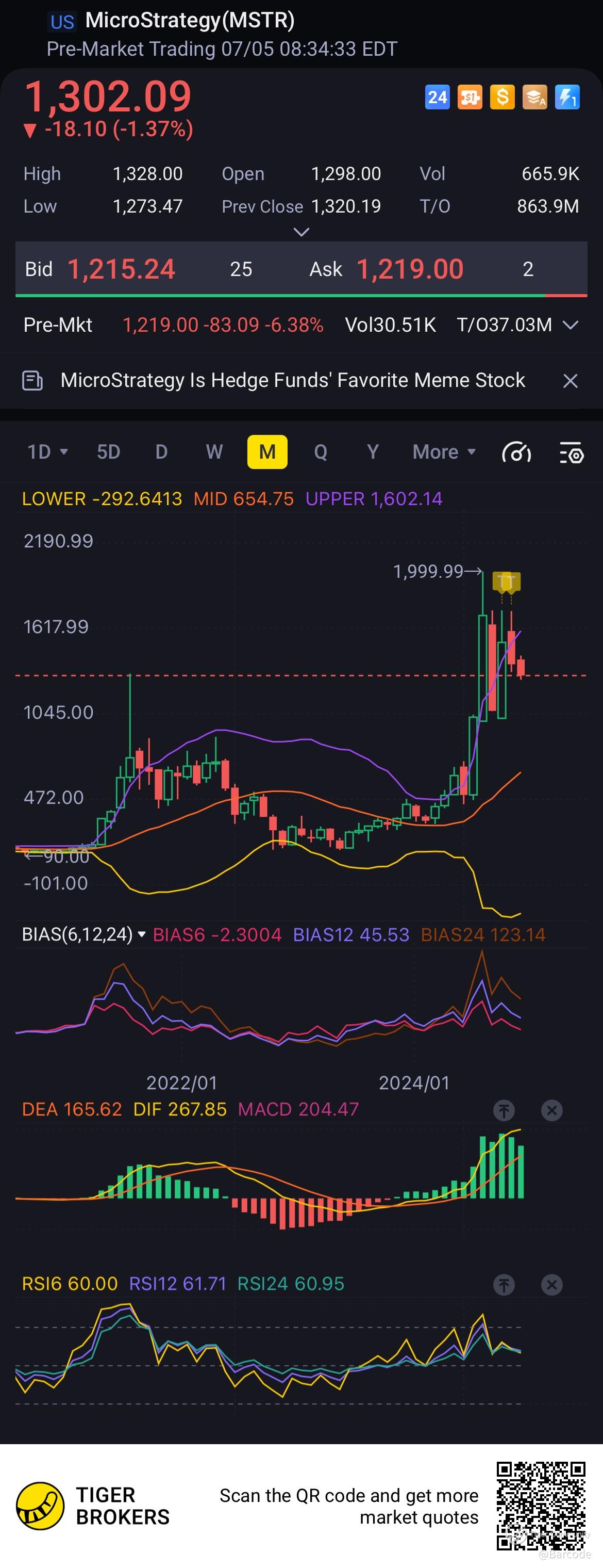 MSTR plugged the gap overnight, landing at $1179. Crucial support level must stay intact.