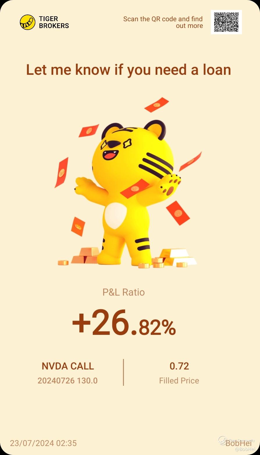 $NVDA 20240726 130.0 CALL$ first green trade!