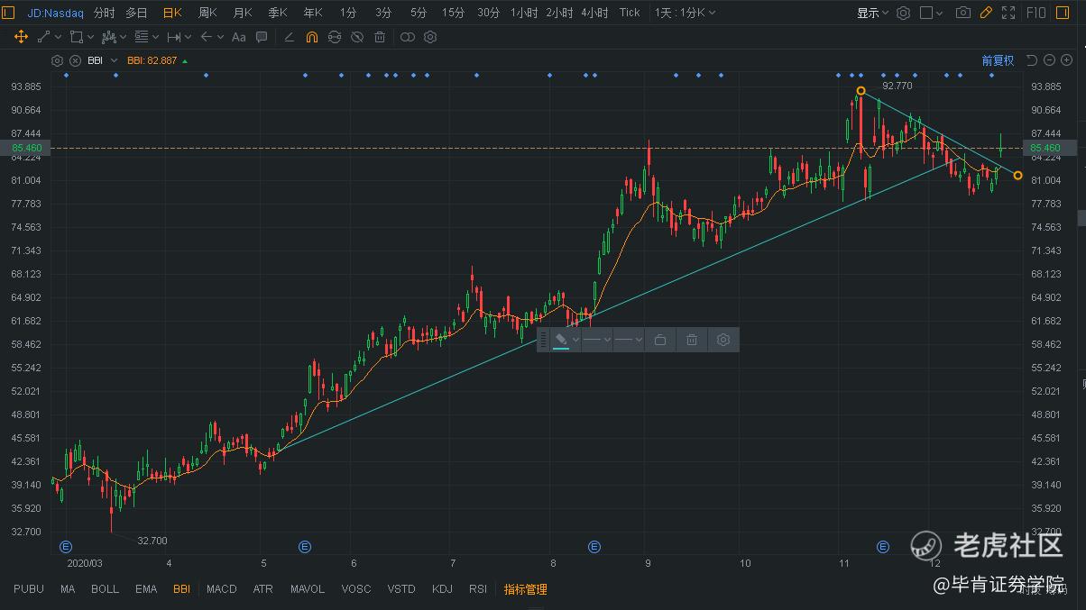 小編語:抄底baba需要謹慎,關鍵的平臺處要注意多空得失,注意風險。