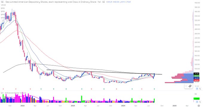 $Sea Ltd(SE)$ stage 2 breakout on deck. 1.5B stock, I like it when it moves.