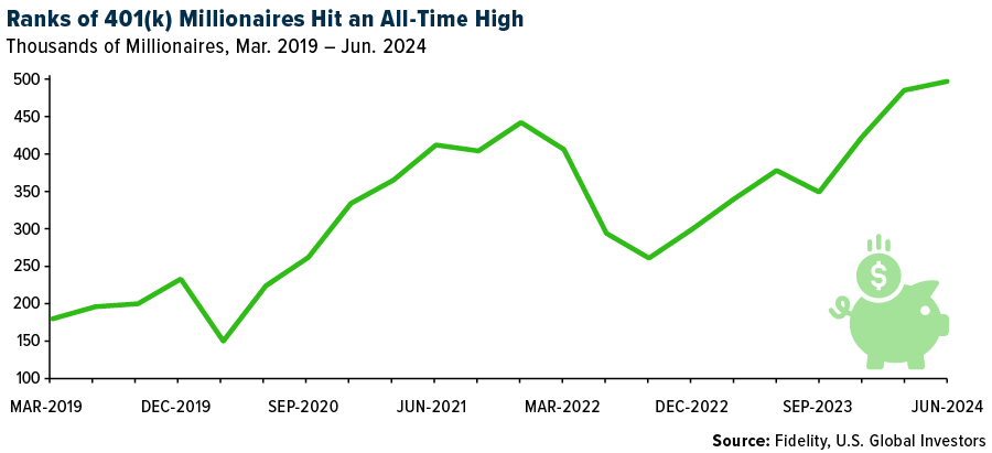 This is excellent news for general investors, including the record number of “401(k) millionaires” — investors who have $1 million or more in their retirement accounts. According to Fidelity, there are now almost half a million such millionaires… and growing!