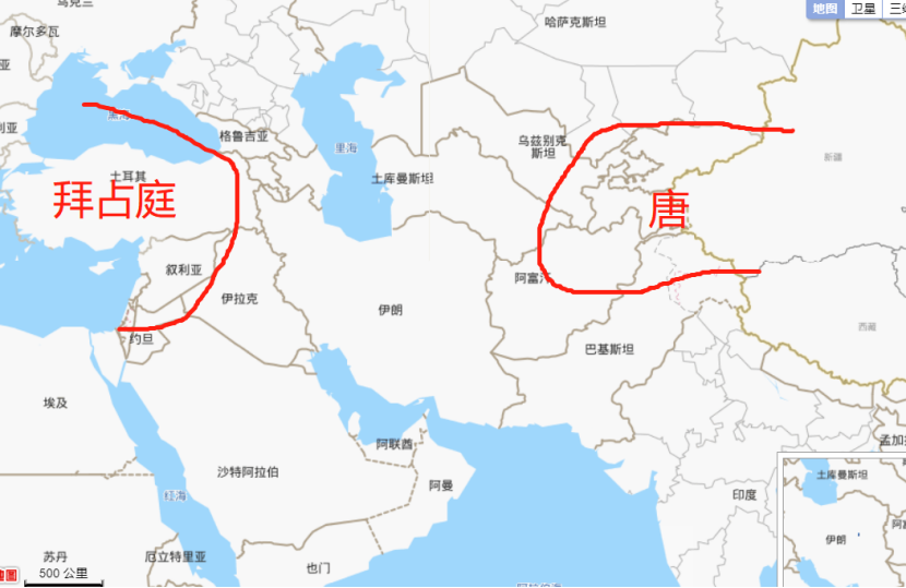 當然,這只是大略的劃分,8世紀中葉怛羅斯之戰爆發前,大唐的手已經伸到了阿富汗地區的兩河流域(區別於巴比倫的兩河),大批附庸於大唐的昭武九姓、粟特人在中亞地區非常活躍。同時在西側,六七世紀的拜占庭帝國擊敗了歐陸強國法蘭克,就此邁入了鼎盛,地中海東岸大片區域被納入了帝國的勢力範圍,東西方真正完成聯通,只差一根“硬骨頭”——波斯高原。