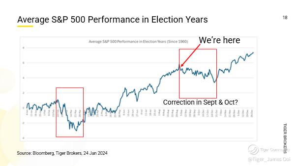 Based on U.S. election year seasonality, U.S. stocks may decline in September and October, with a rally expected to begin in November and December.