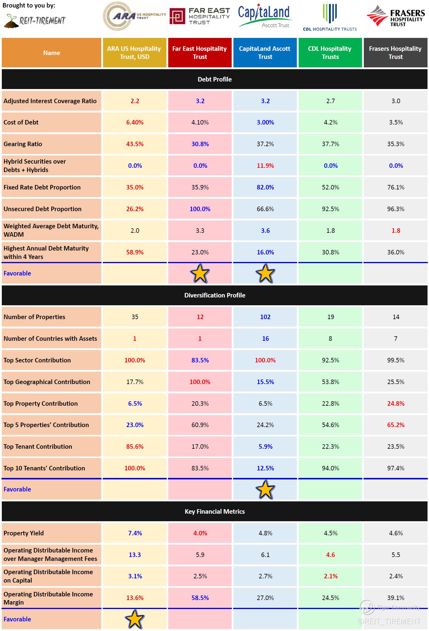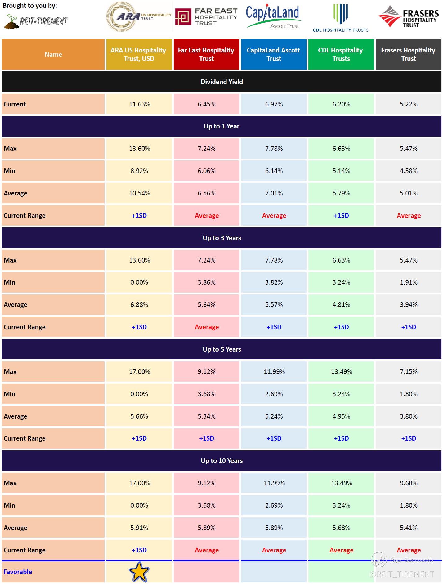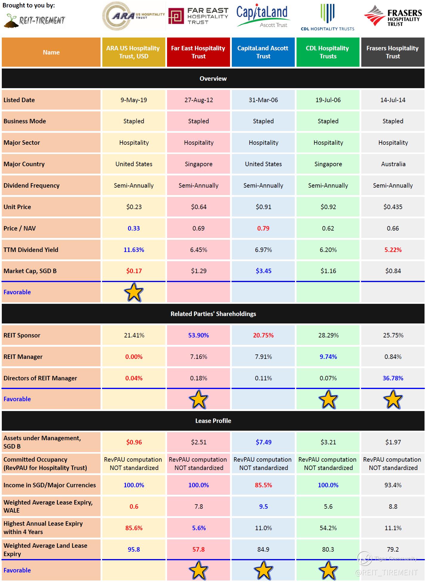 $CapLand Ascott T(HMN.SI)$ $Frasers HTrust(ACV.SI)$ $Far East HTrust(Q5T.SI)$ $ARA HTrust USD(XZL.SI)$ $CDL HTrust(J85.SI)$