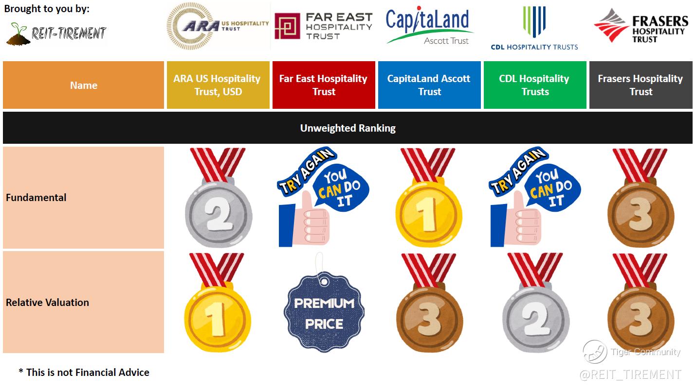 The above is just a quick comparison without weightage assigned. For more information, check out REIT-TIREMENT
