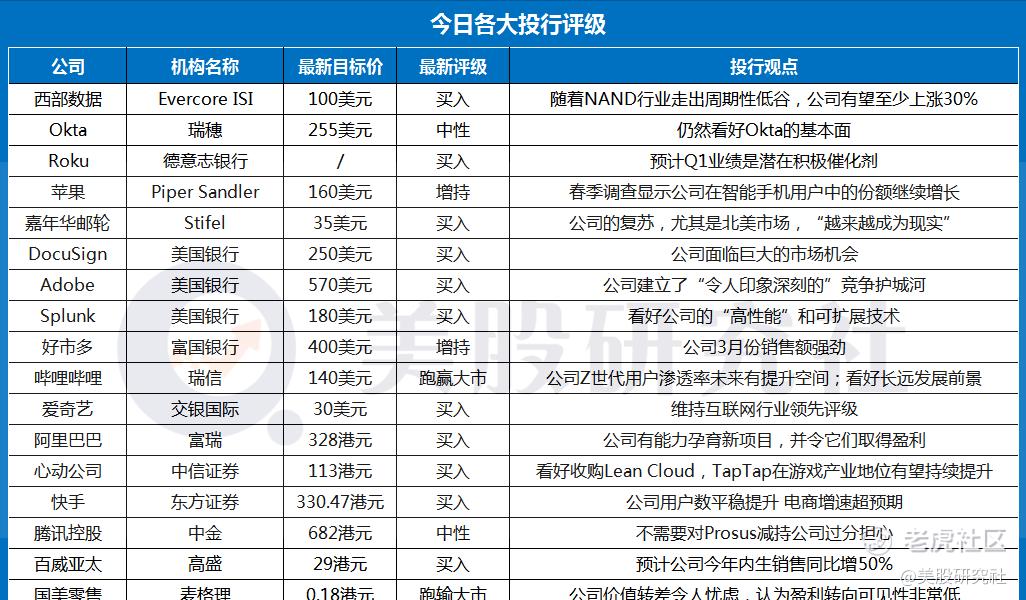 【今日機構評級彙總】Piper Sandler認爲蘋果iPhone市佔率或仍有上升空間;瑞信看好嗶哩嗶哩長遠發展前景