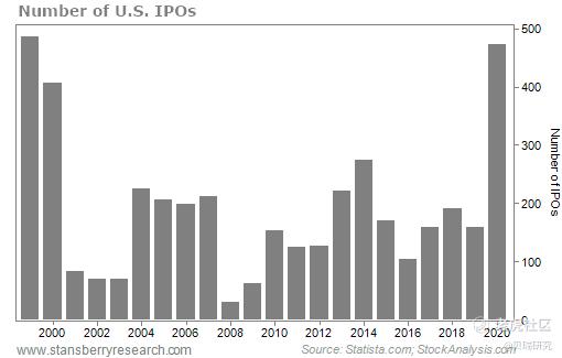 2020年共有480宗IPO,這是至1999年以來數量最多的一次,較2014年的增長了50%以上,而2014年是過去十年中第二大IPO年。
