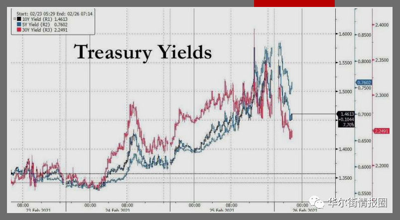 *美債收益率一度上探至令分析師驚愕的水平(1.6%),好在收盤跌回了關鍵的1.5%水平下方。美債收益率扶搖直上,到了一個過頭的點位。投資者在週四跳漲後變得謹慎,重新調整倉位。
