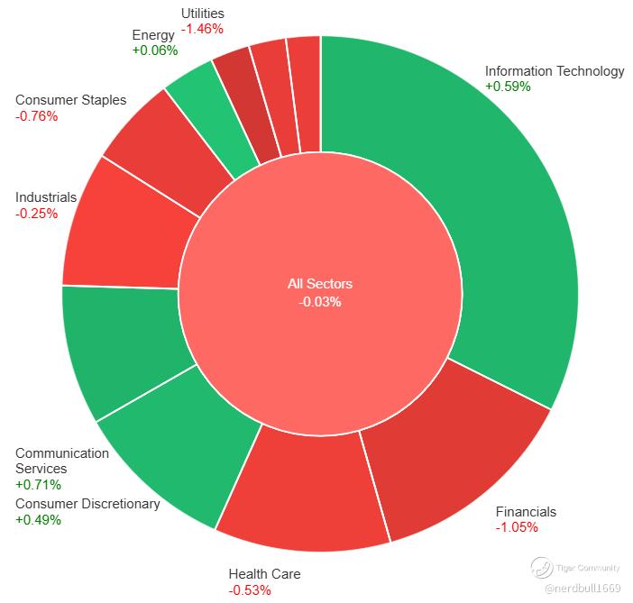 We saw financials and utilities sectors losing more than 1% at -1.05% and -1.46% respectively.