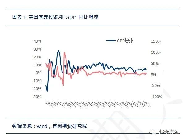 2、依靠基建投資,美國經濟也成功從大蕭條的泥沼中重新復甦。羅斯福當政時期,民間資源保護隊(CCC)和工程進度管理局(WPA)大量僱傭失業工人進行學校醫院以及公路橋樑的建設和維護工作。受到基建投資的帶動,美國的失業率出現大幅下降,同時 GDP 同比增速在 1934 年就由負轉正,達到10.8%。