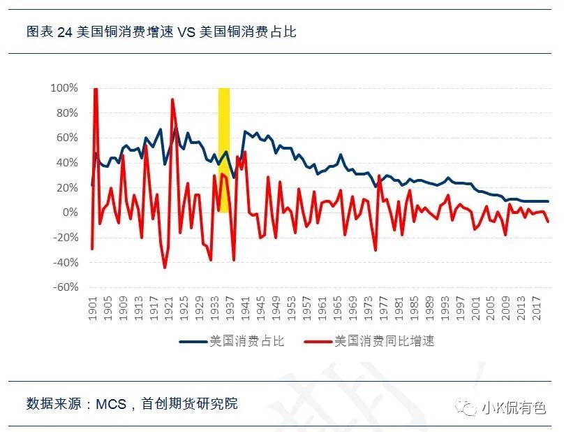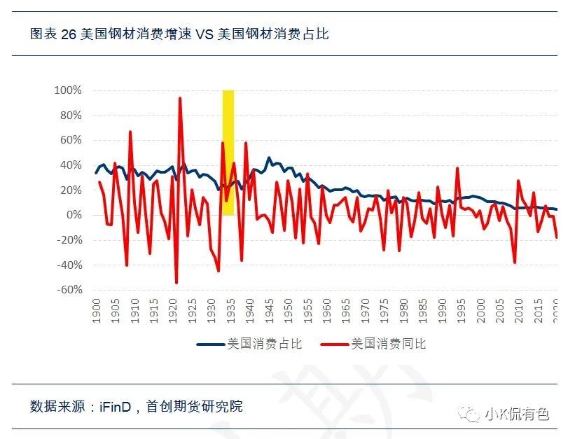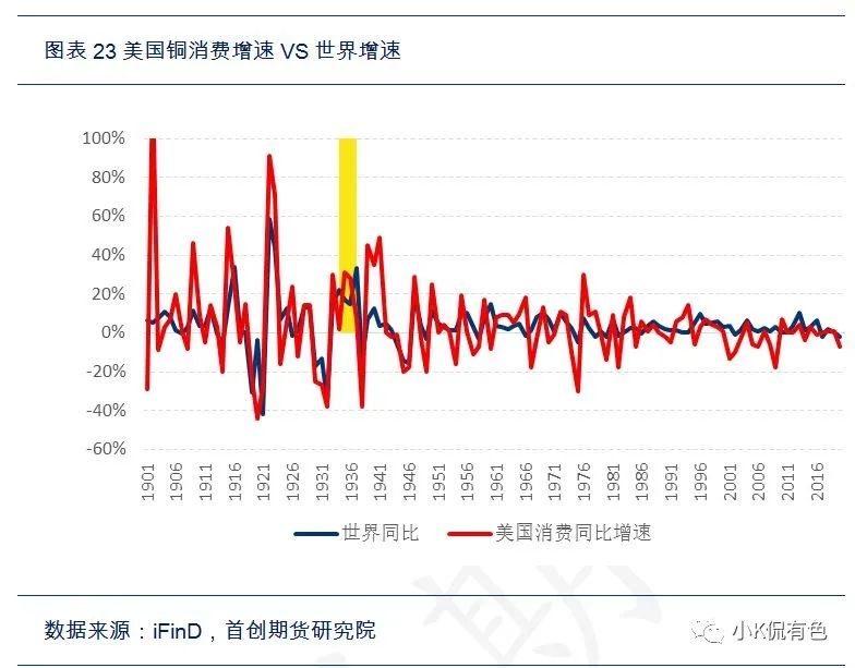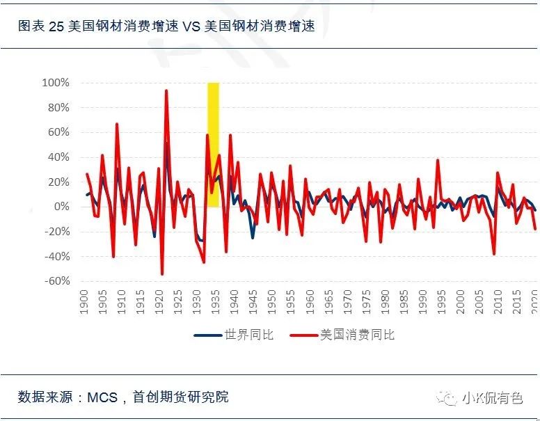 然後根據價格領先於新房銷售,新房銷售領先於建造支出的邏輯,可以通過數據擬合推算出30年代的房地產的大致規模數據,從而大致算出大宗消費的使用量。
