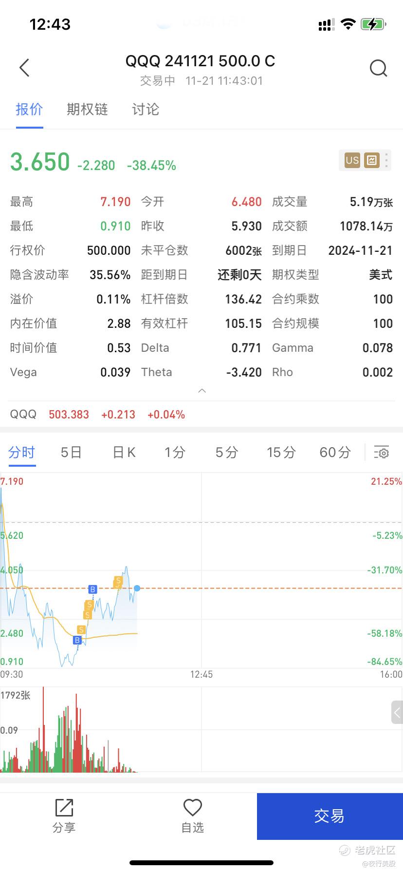 - 夜行人SSS·2024-11-22双账户call 今天和明天的qqq,真爽,今天洗盘,能稳住的话,明天大概率会继续涨,仅供交流LikeReport
