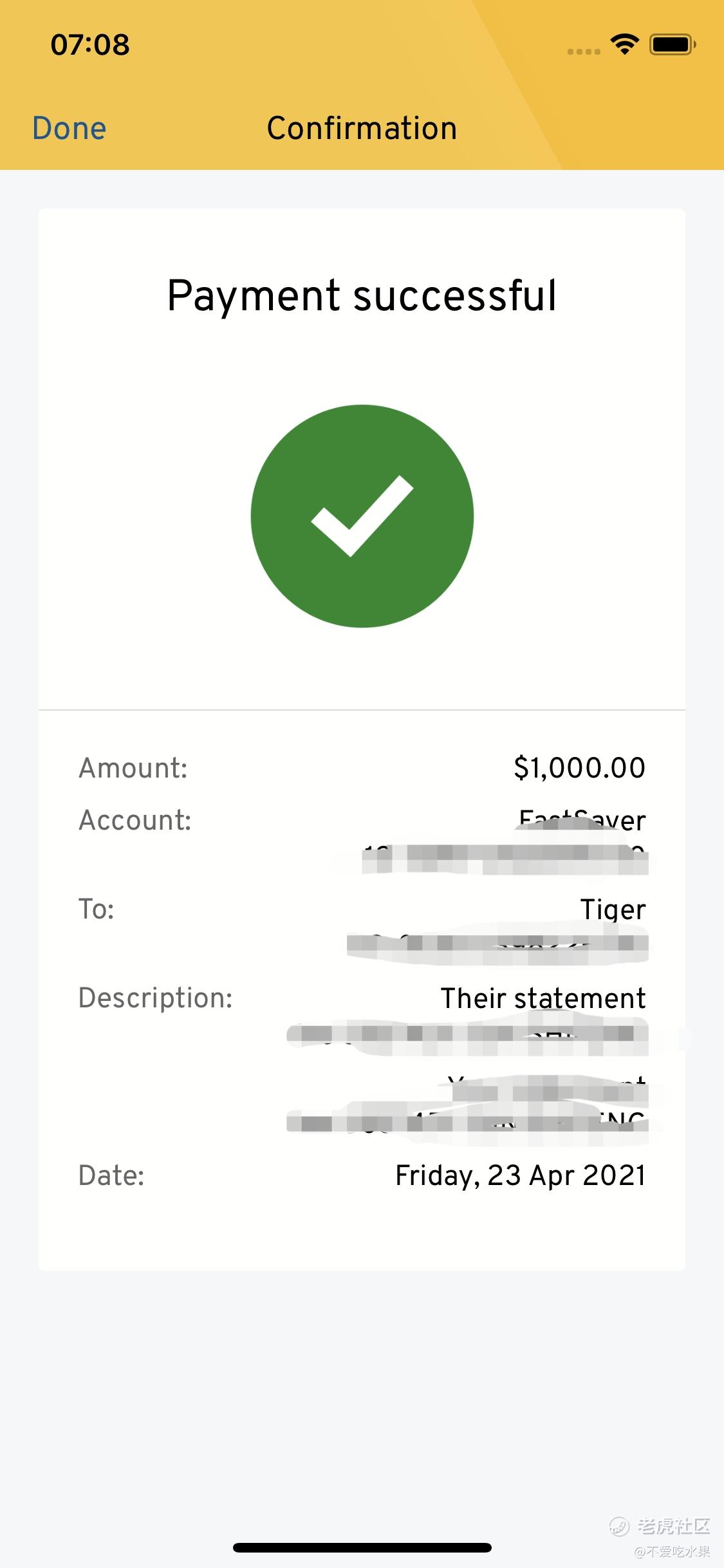 我諮詢了老虎的客服,客服在問清楚我的情況後向我提供了老虎證券新西蘭的銀行賬戶,我的asb賬戶當時還有300紐幣,當天就試了一下,成功入金,用時6小時。