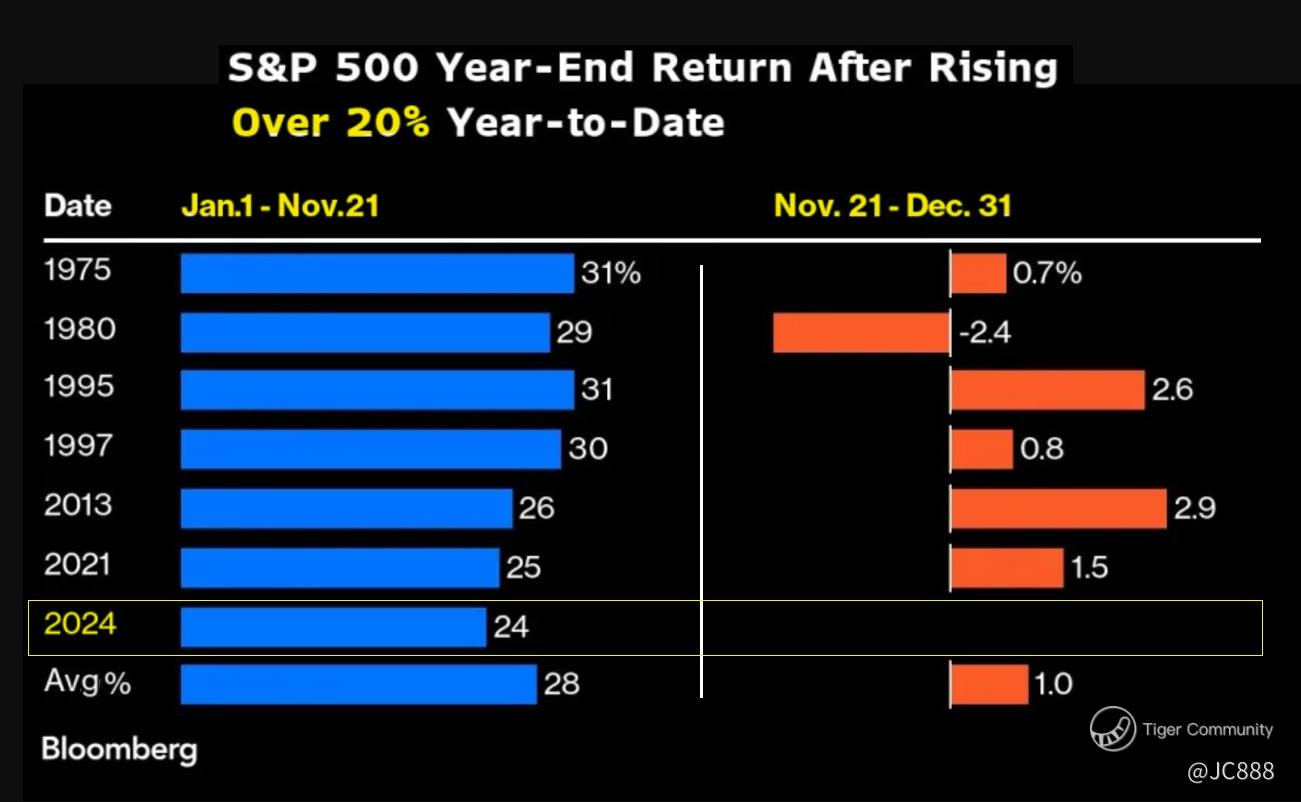 However, those year-end rallies typically are not as robust, when the S&P 500 has already risen at least 20%.