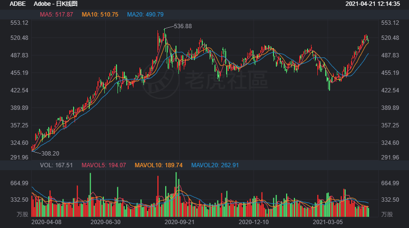 而Adobe這家公司也依然在延續往日的繁榮,自去年疫情反彈以來,Adobe股價一直處於一個較爲穩定的區間,扛得起市場的千變萬化,風吹雨打。$Adobe(ADBE)$