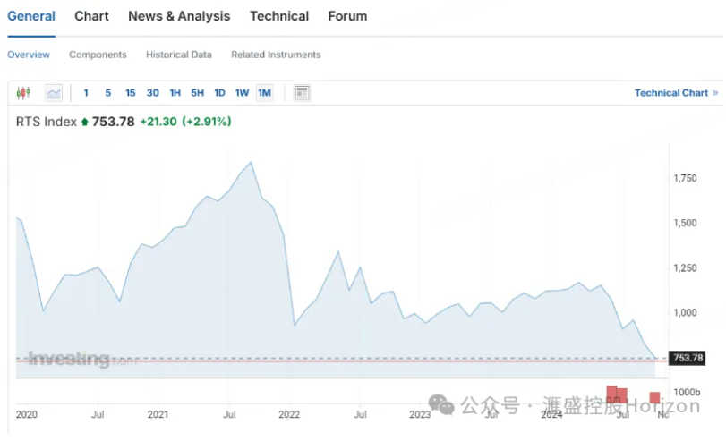 Russian Stock Index RTS, February 24, 2020, Data Source: Investing.com
