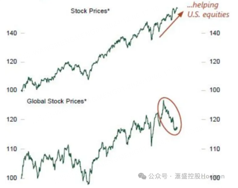 After 2024 US election, the US stock market surged while other countries' fell. Data source: MSCI