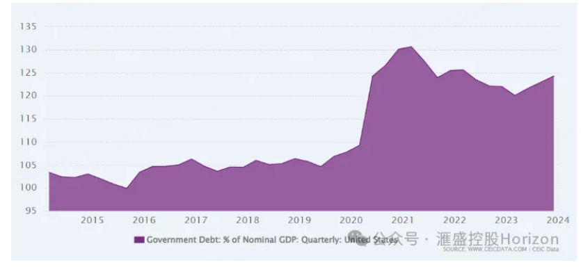 As the cornerstone of the world's trade and monetary system, the Bretton Woods system, which reconstructed the US dollar after World War II, is now full of holes. The trend of the US dollar has a fundamental impact on the stock markets, bond markets, commodity markets, and of course, exchange rates of various countries. There are many factors that can lead to the depreciation of the US dollar, and there are even more factors that can lead to the appreciation of the US dollar. Factors that can lead to the depreciation of the US dollar include the long-term twin deficits of the United States: huge fiscal deficits and huge trade deficits. Under the Biden administration in recent years, the U.S. fiscal deficit has soared, leading to a rapid increase in the national debt as a percentage of GDP. Currently, the US national debt to GDP ratio has reached 123%, a new high since the end of World War II. The continuous rise in debt will eventually lead to currency devaluation. Moreover, according to research from the International Monetary Fund, a debt ratio of 120% is a red line. Once exceeded, due to interest expenses exceeding the growth of GDP, technically, it begins to enter a vicious cycle, with the debt ratio continuously rising until default.