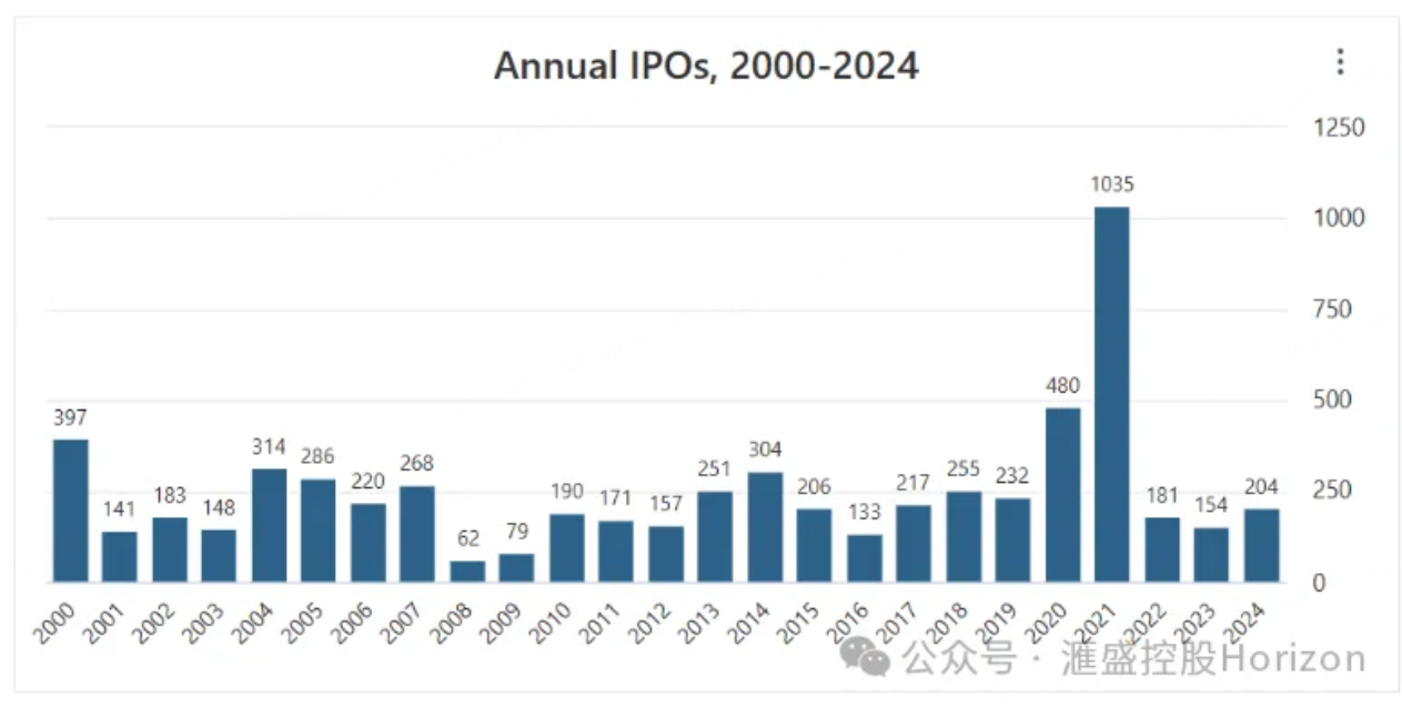 There is a lot of discussion on Wall Street now about Trump 2.0 trading. This 2.0 trading refers to the Trump 1.0 trading during Trump's first term as President of the United States from 2016 to 2020, and then "pressing the fast-forward button." The core of the Trump trade has many specific operations, but it is very simple: tax cuts + reduced regulation. Due to very strict regulation, the period from 2022 to 2023 was a low point for the U.S. capital market. The number of initial public offerings (IPOs) and the number of mergers and acquisitions both reached a twenty-year low.