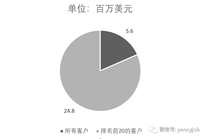Palantir單位客戶合同單價高,頭部客戶貢獻大部分收入。對公客戶主要爲政府機構,對私客戶主要爲美國大型企業,面對的問題複雜且定製化需求程度大。每一份合同都代表着與客戶的長期合作,一般訂單週期爲3年。單價也較高,通常購買費用在500萬美元到1000萬美元之間,要求客戶先支付20%的費用,剩餘部分在顧客滿意之後支付。除了提供服務器,Palantir還提供培訓和工程支持,這將大大增加產品的總體成本。維護費用每年也要3萬美元,培訓費用每名用戶爲1萬美元。此外,公司還提供諮詢服務,每小時爲150至300美元。2008-2019年Palantir平均客戶收入年複合增長率爲30%,前20大客戶爲35%,未來Palantir將繼續保持這一營收特點,深化大客戶的獲取與培育。