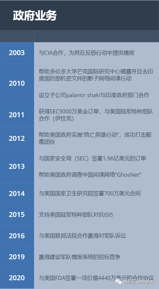政府部門是PLTR的主要合作方,曾經有不少媒體和公衆稱之爲“政府的爪牙”。